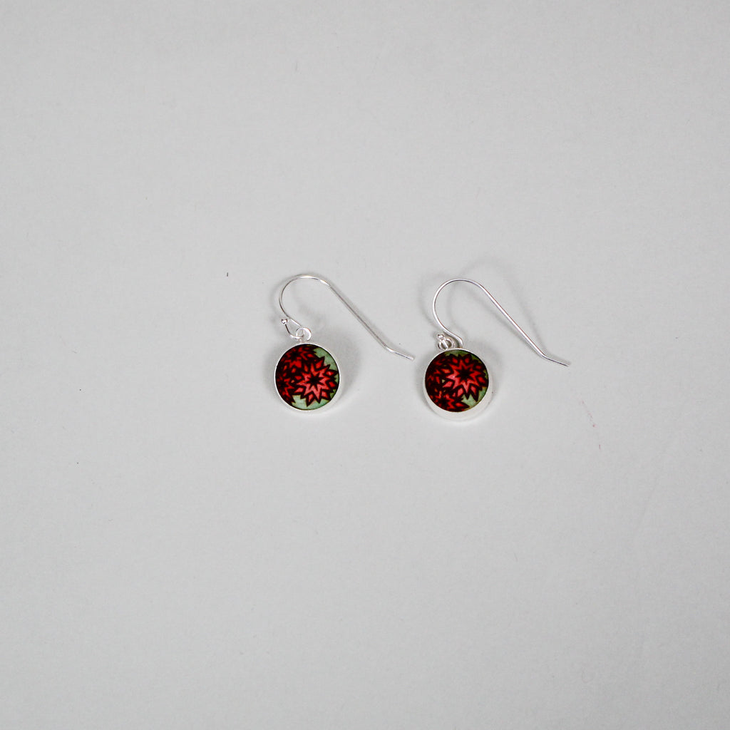 Pink & Green Flowers Dangle Earrings